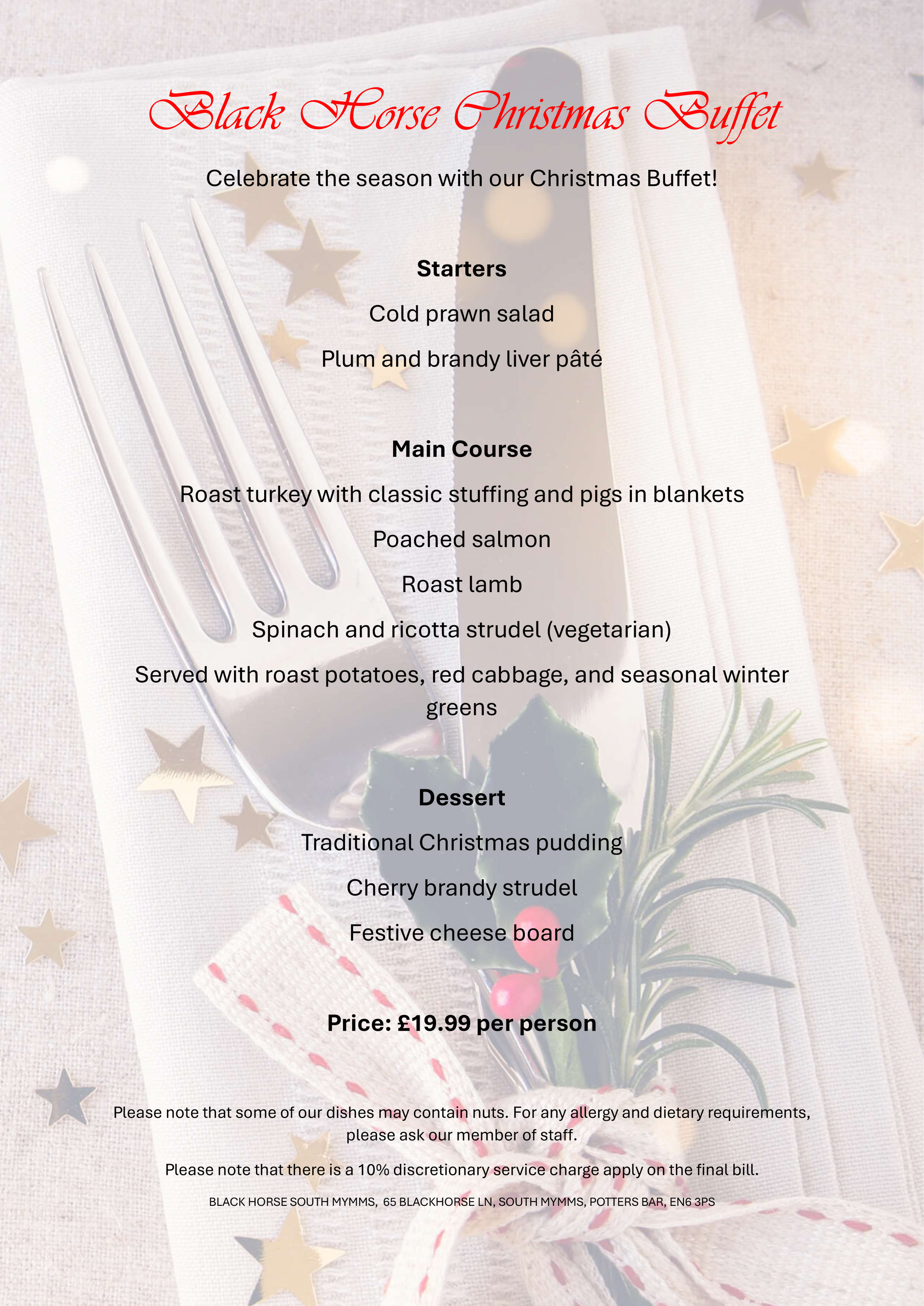 Black Horse Christmas Menu